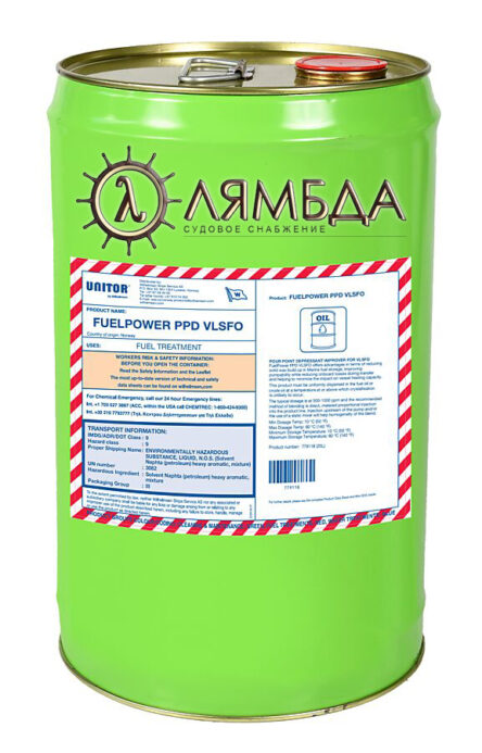 FUELPOWER PPD VLSFO средство для работы в холодную погоду с остаточным судовым топливом, как высокосернистым, так и малосернистым. Unitor FuelPower PPD VLSFO помогает уменьшить размер образующихся парафиновых отложений и снизить риск их оседания в топливных баках.